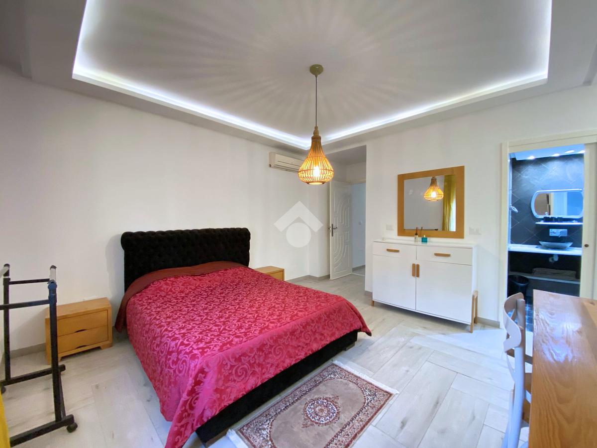 La cuisine américaine, entièrement équipée d'une hotte aspirante, d'un four électrique, d'une plaque à gaz, d'un micro-ondes, d'une lave vaisselle d'un réfrigérateur et d'une machine à laver, est aménagée avec des éléments de rangement et complétée par un séchoir.