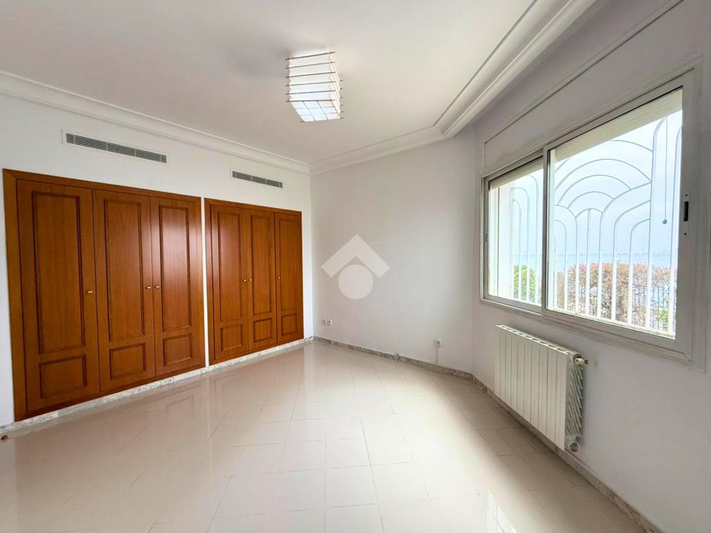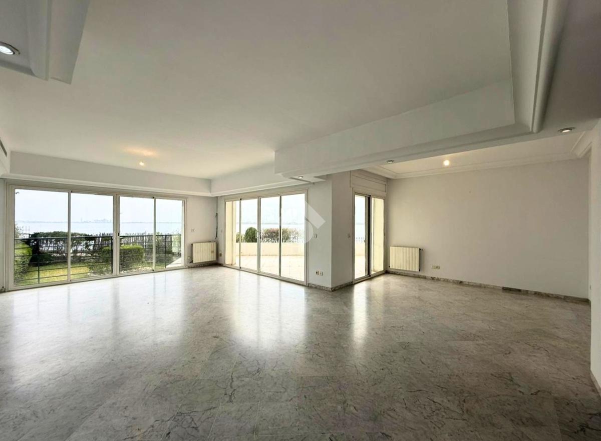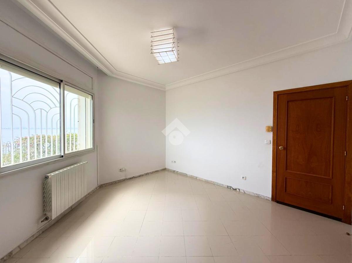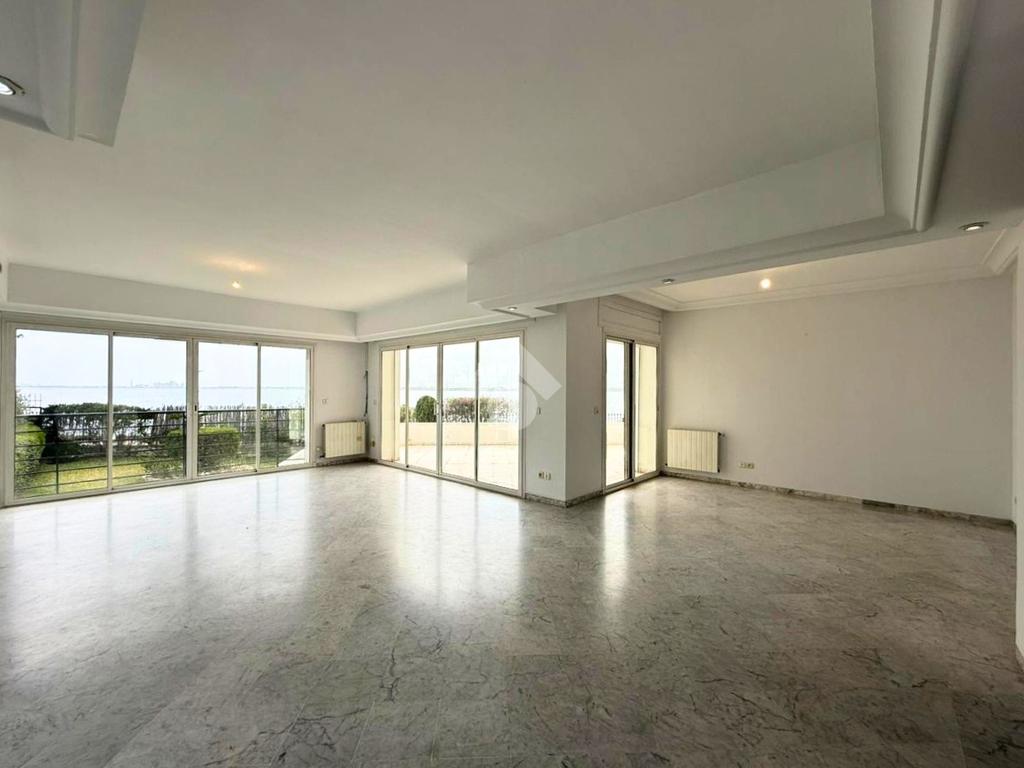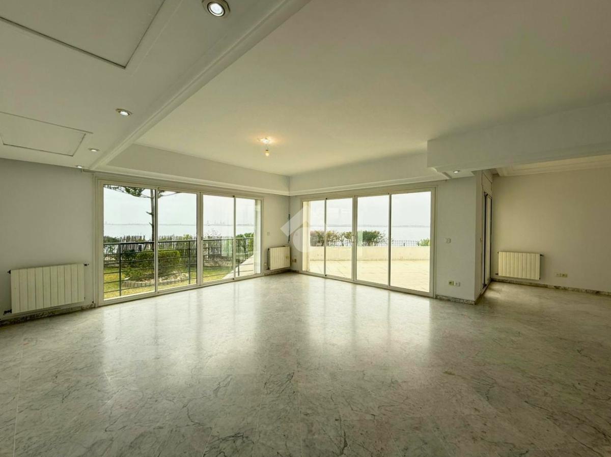 L’entrée s’ouvre sur un salon et une salle à manger revêtu de marbre blanc, bénéficiant d’un accès à un balcon offrant une vue directe sur le lac, prolongé par un jardin privatif, idéal pour profiter d’un cadre de vie agréable.
