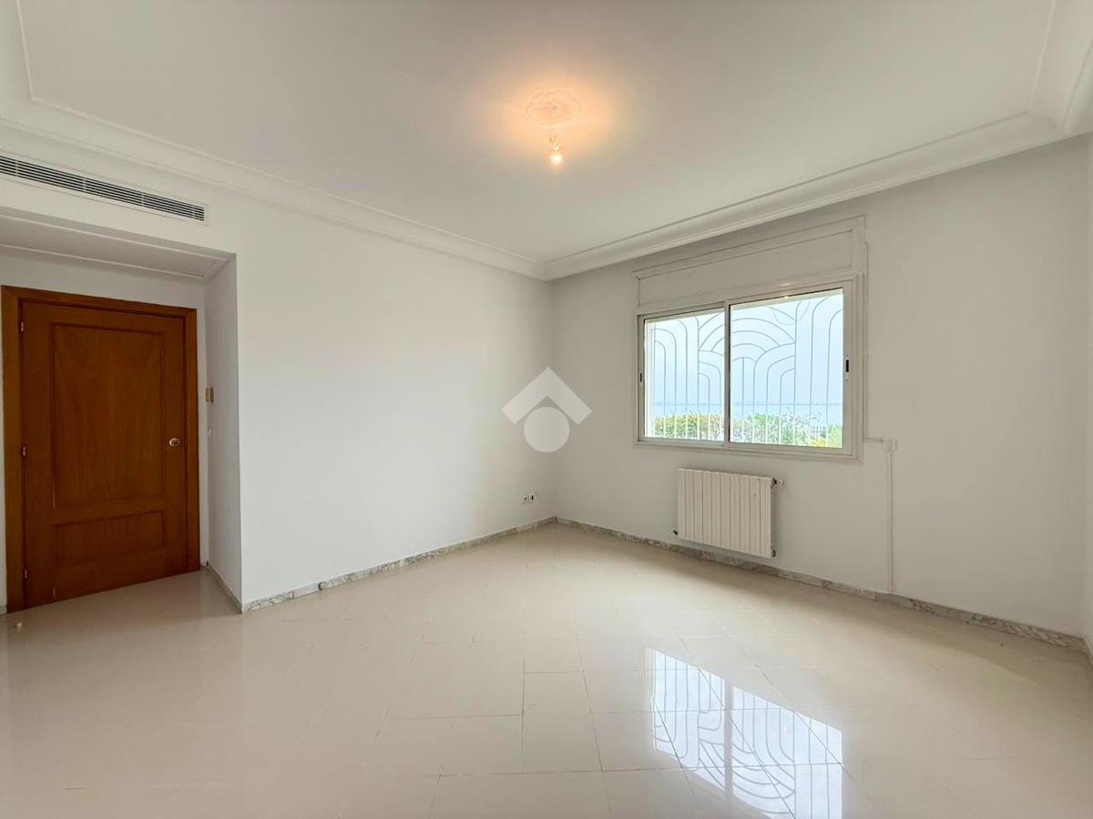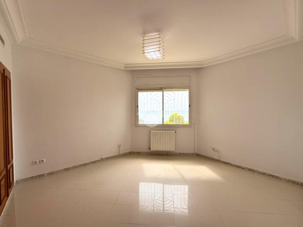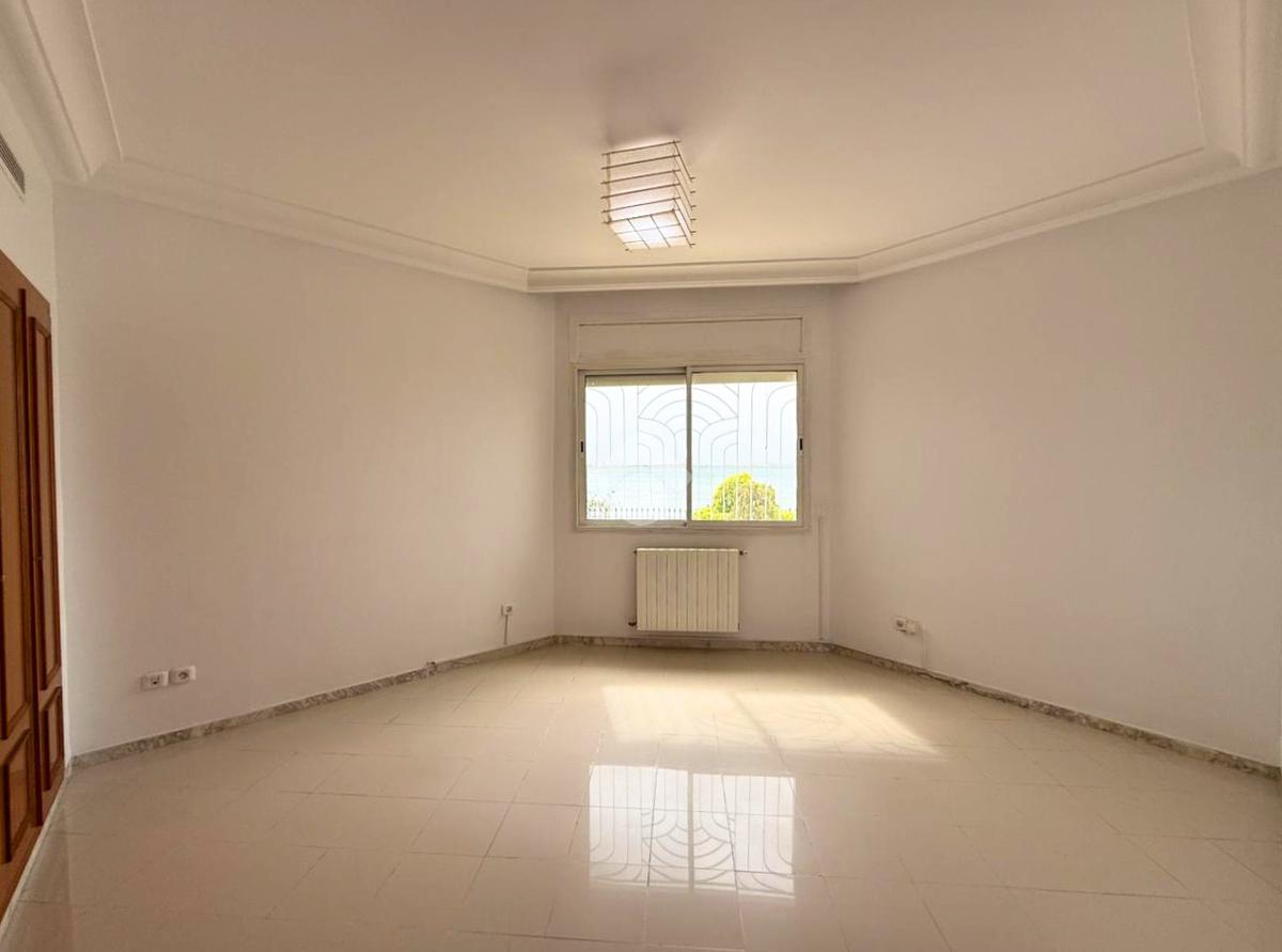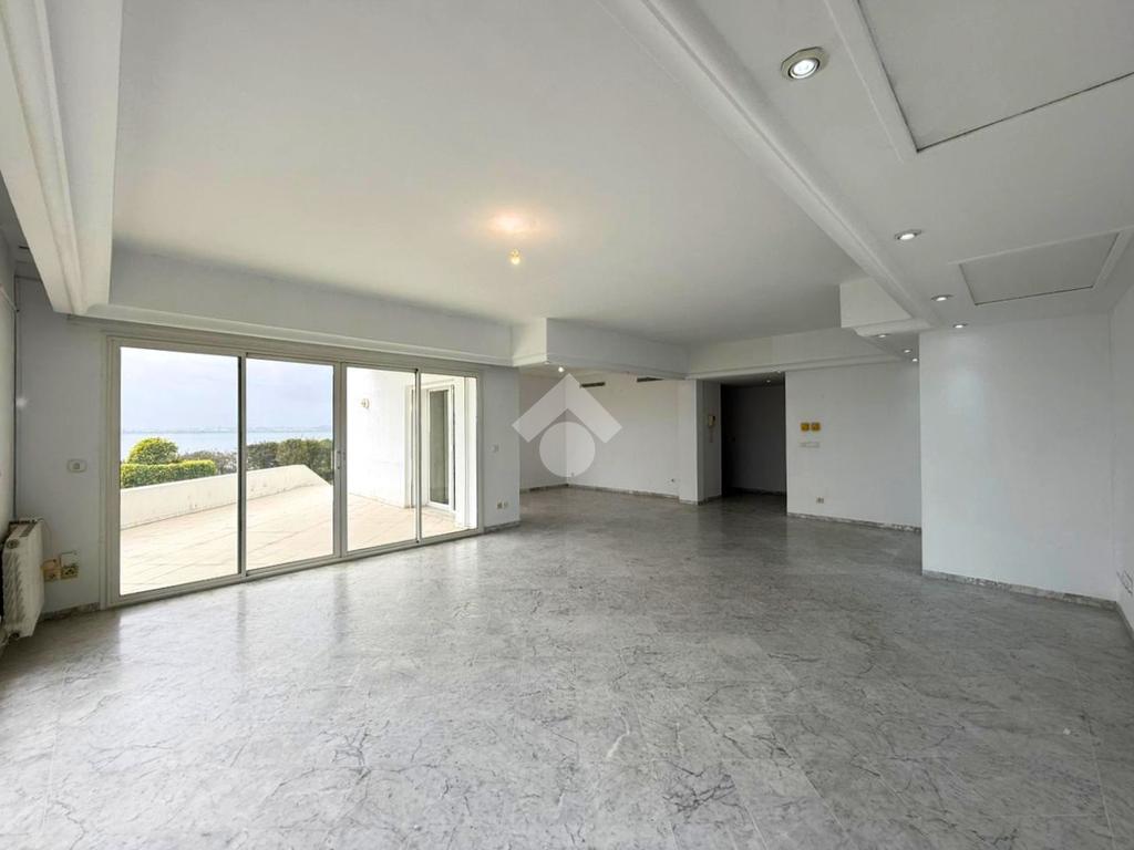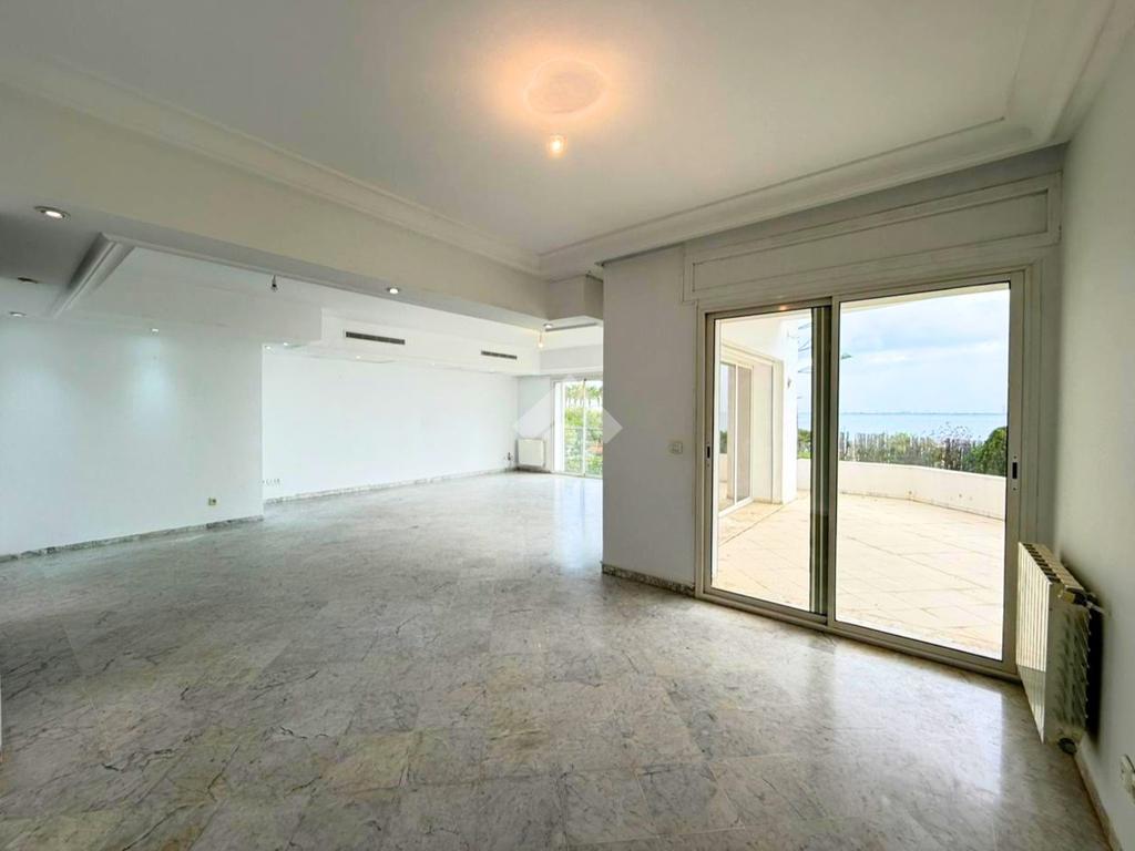 L’entrée s’ouvre sur un salon et une salle à manger revêtu de marbre blanc, bénéficiant d’un accès à un balcon offrant une vue directe sur le lac, prolongé par un jardin privatif, idéal pour profiter d’un cadre de vie agréable.
