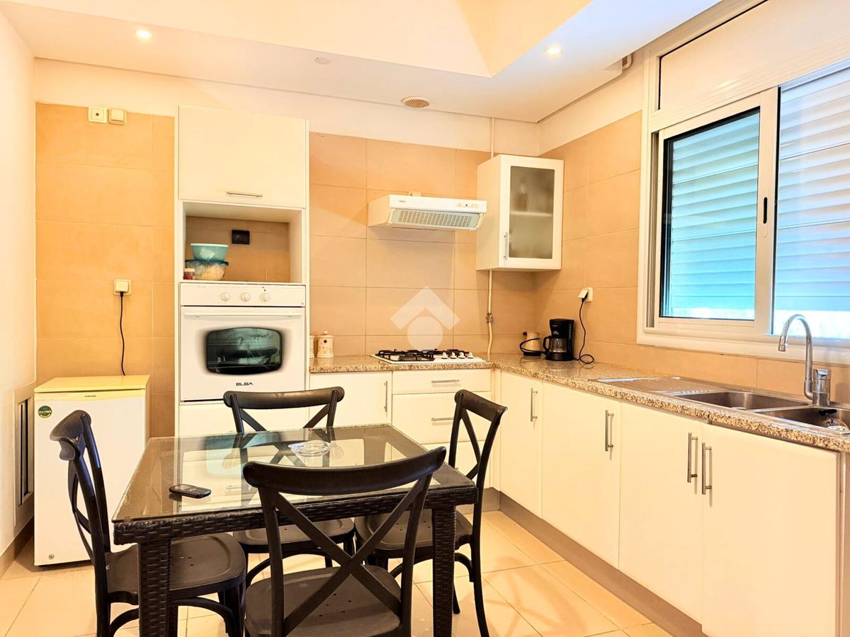 La cuisine est entièrement équipé par une plaque, hotte, four, aménagée avec des éléments de rangements et complétée par un séchoir.
