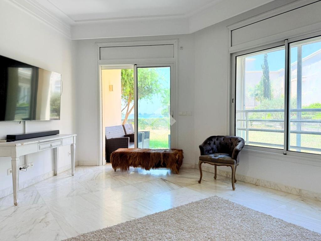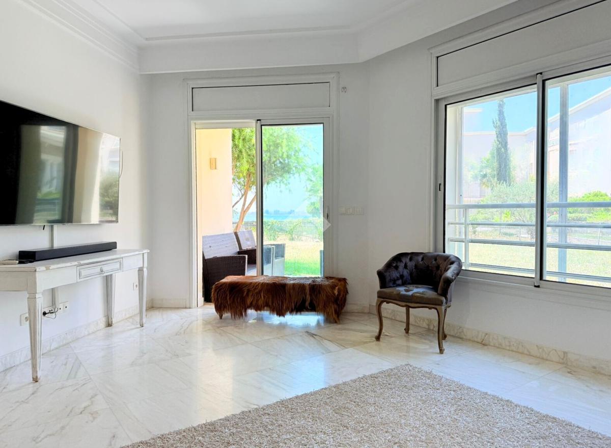 L’entrée s’ouvre sur un salon revêtu de marbre blanc, inondé de lumière naturelle grâce à des ouvertures donnant accès à un jardin d'une superficie de 220 m², offrant une vue imprenable sur le lac.