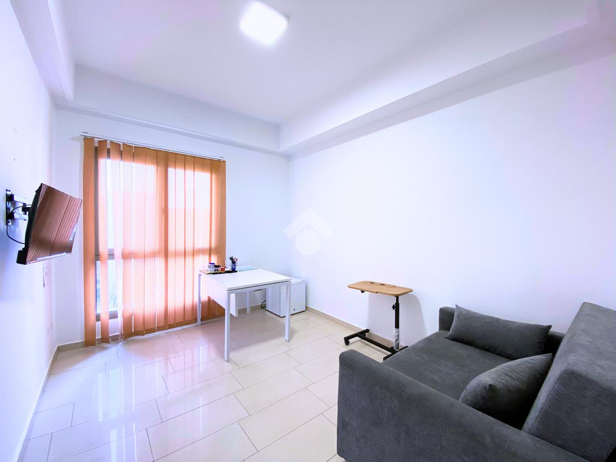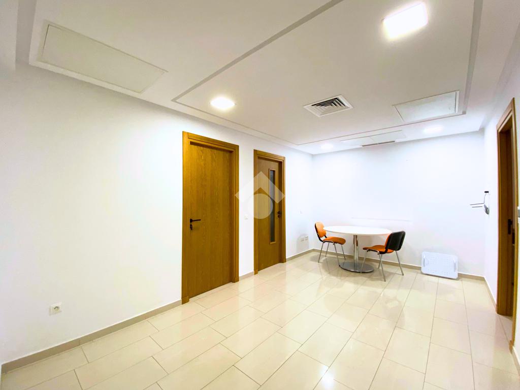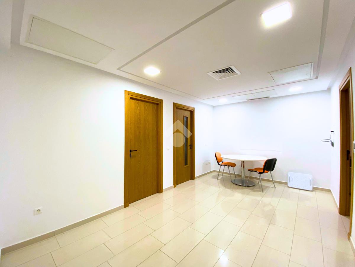 Il abrite un hall d'accueil, suivi de trois pièces de bureaux, d'une kitchenette et de deux salles d'eau.