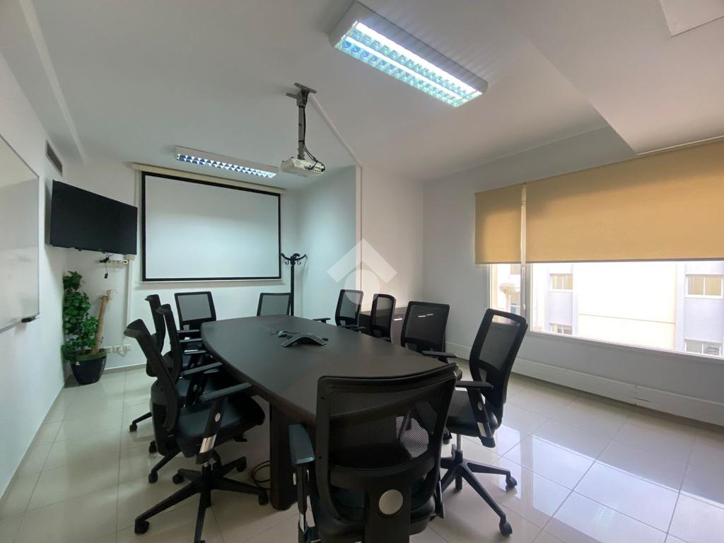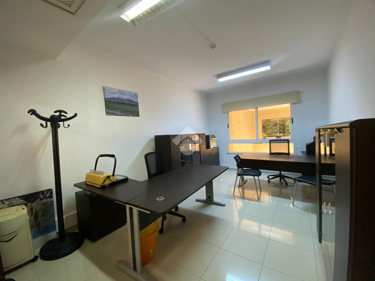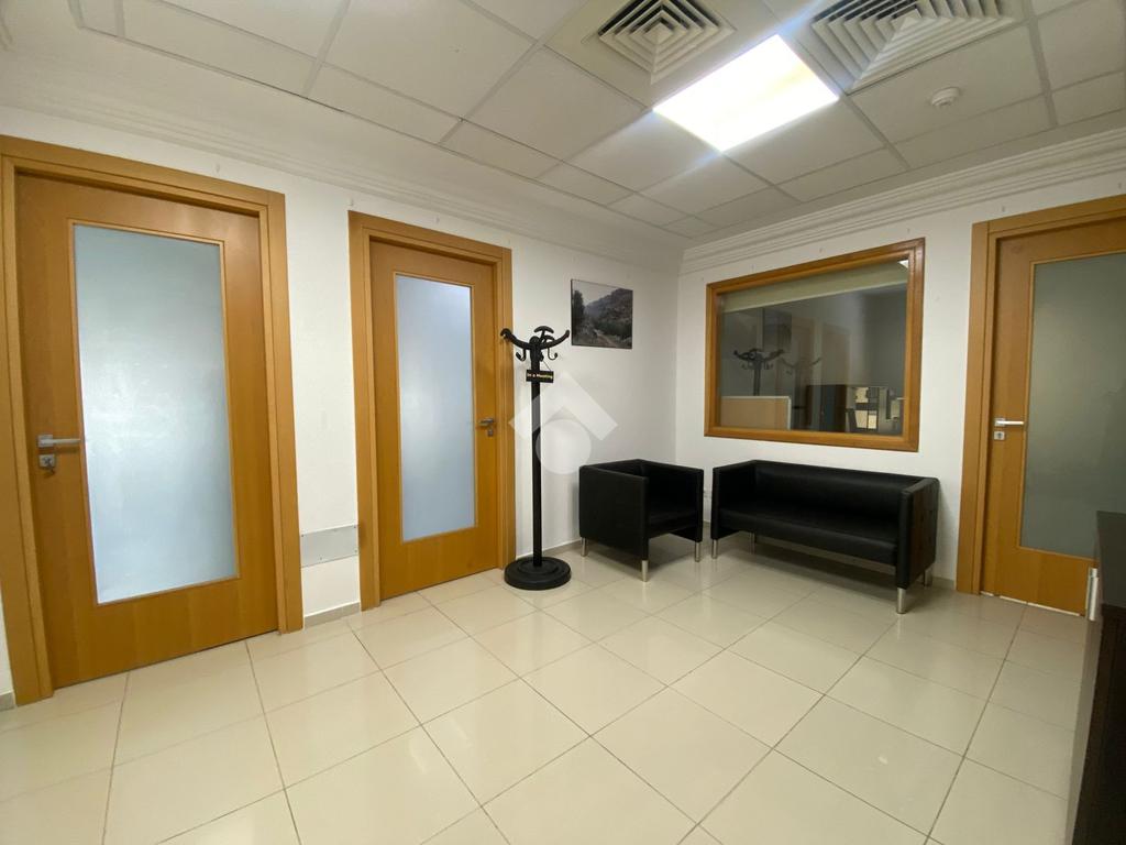 Il abrite un hall d'accueil, suivi de trois pièces de bureaux, d'une kitchenette et de deux salles d'eau.