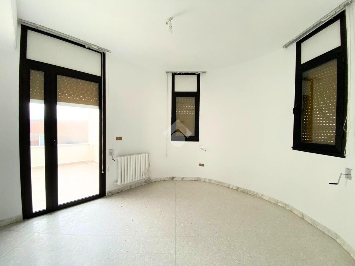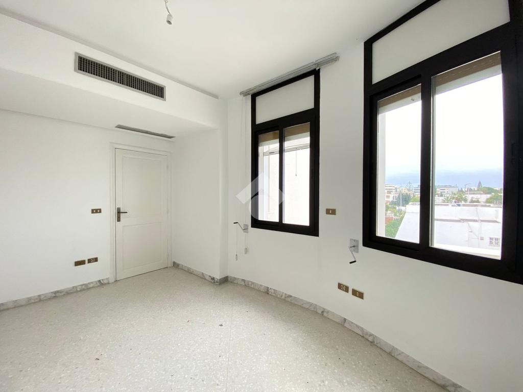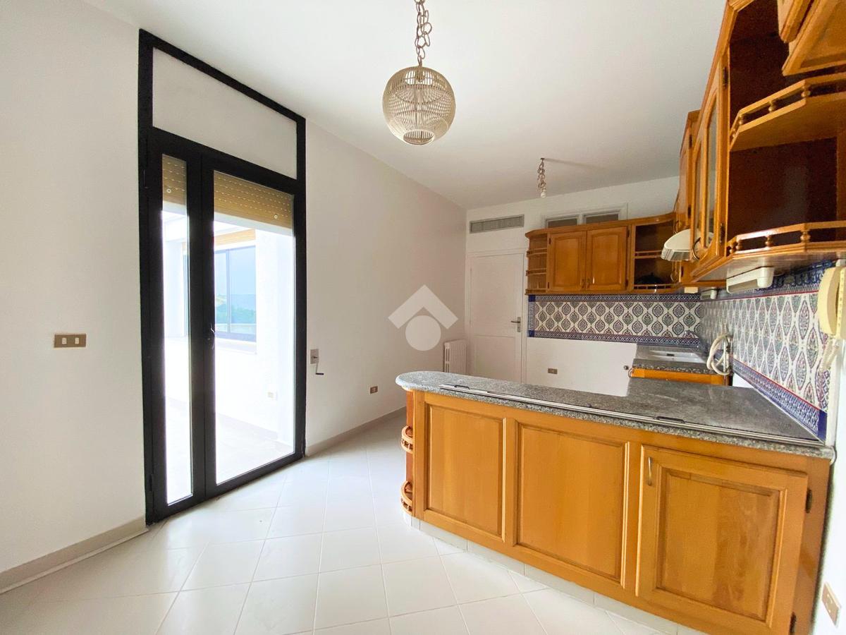 La cuisine est équipée d’une hotte et d'éléments de rangements complété par une terrasse commune avec l'open space.